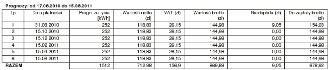 i tak w 2010 dwumiesięczne szacowane zużycie wynosiło 252 kWh a w roku 2011 MIMO NADPŁATY 293 kWh 🙂